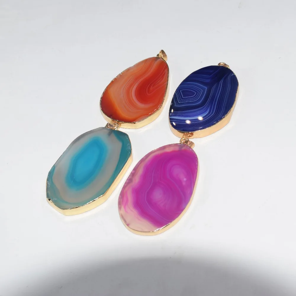 Stone Slice Hanger Natuurlijke Slab Edelsteen Ketting Voor Vrouwen Gift