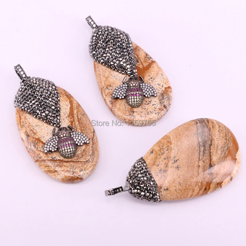 Kopen Goedkoop Fashion 3 Stks Natuurlijke Foto Steen Freeform Slab Micro Pave CZ Bee Metalen Insect Charm Hanger Sieraden Ketting Maken Online