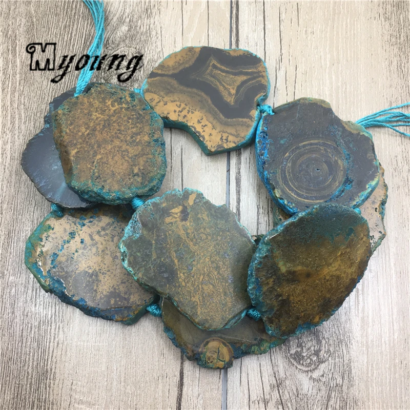 Beste Kopen Freeform Bruin Slice Agaat Hanger Kralen Met Blauwe Randen, Natuursteen Slab Geboord Kralen Voor DIY Sieraden MY1796 Goedkoop.