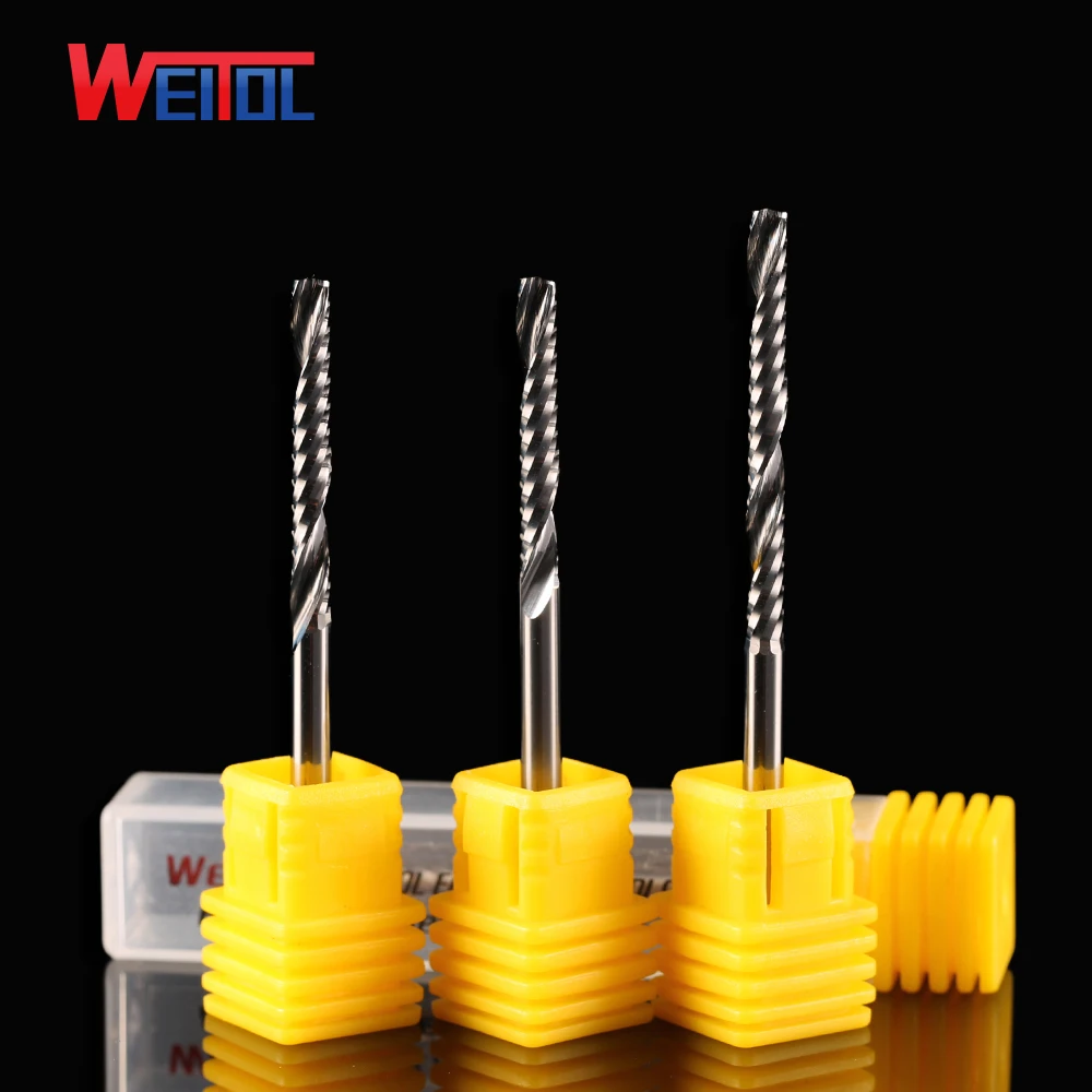 . Goede Koop Weitol 3A 1 stks 3.175mm Enkele Fluit Bit Carbide End Mill Set, CNC Router Frezen voor Acryl snijden bit Goedkoop.