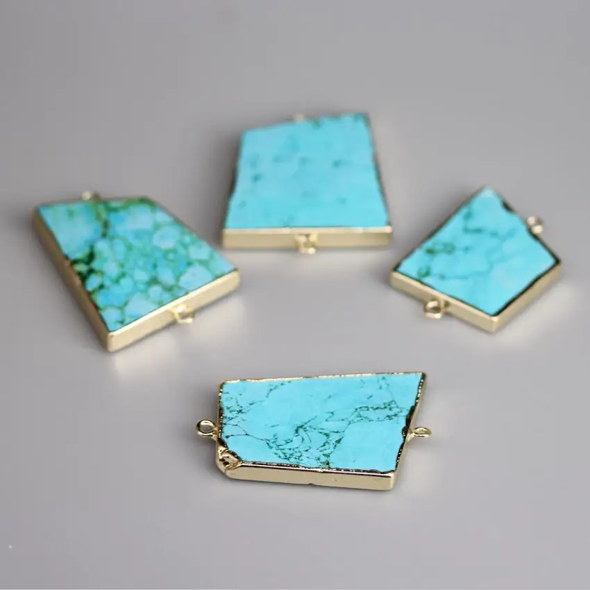 Kopen Goedkoop 5 stks partij Gold Randen Natuurlijke Turkooizen Onregelmatige Slab Connectors, Dubbele Borgtocht Blauw Howliet Stone Gem Slice Hanger Charms Maken Online