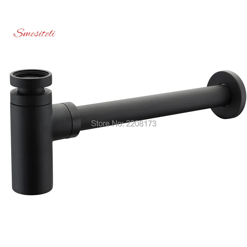 Beste Koop Luxe Nieuwe Desgin Luxe Mat Zwart Hoge Kwaliteit Messing Body Euro Wastafel Fles Sanitair P Trap Wassen Pijp Afval badkamer Wastafel Val Goedkoop.