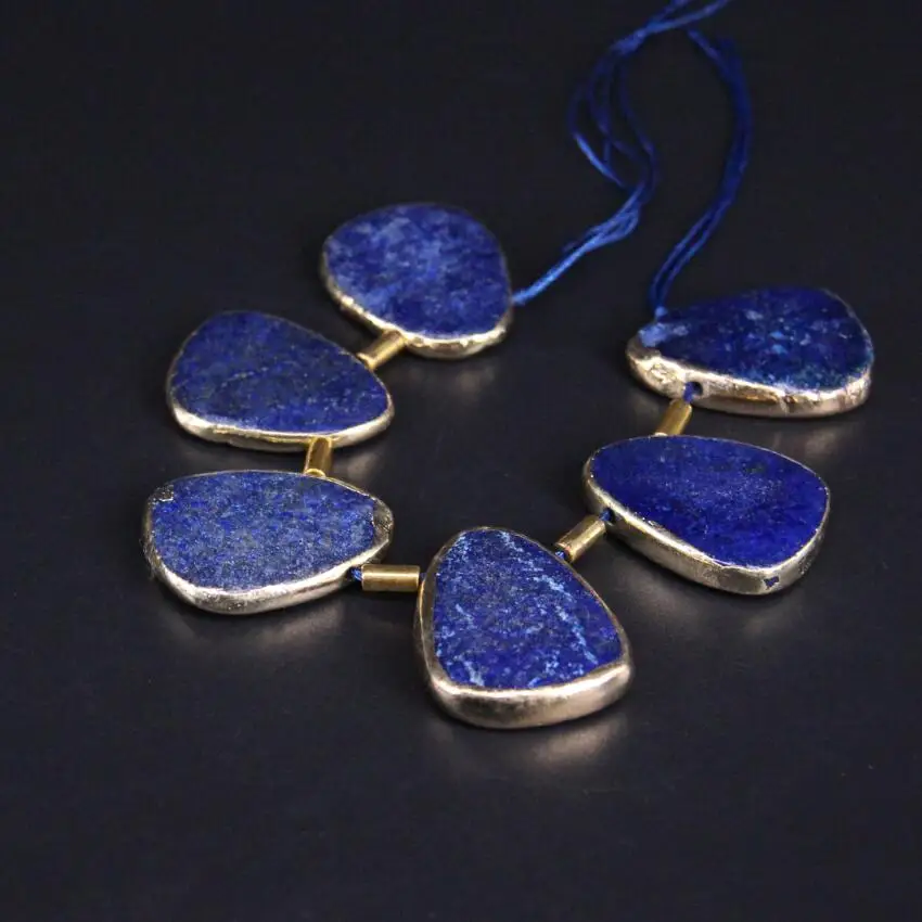 Beste Koop Approx6PCS strand Gold randen Ruwe Lapis Lazuli Top Geboord Slab Slice Hanger Kralen, Natuurlijke Edelstenen Steen Nugget Sieraden maken Goedkoop