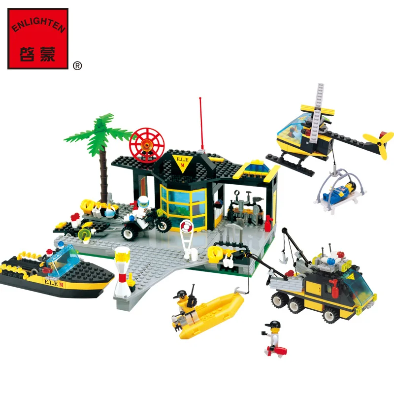 Beste Koop ENLIGHTEN Politie Maritime Rescue Centre Motorboot Helicopter DIY Model Bouwstenen minifig Kids Educatief Speelgoed Gift Goedkoop