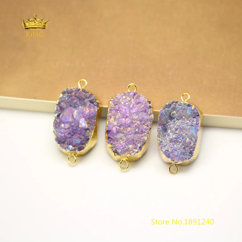 Goede Koop 10 stks Grote Titanium Paars AB Druzy Ruw Kwartsplaatje Connectors, Ruwe Drusy Kristallen met Goud Koper Borgtocht Links armband GH206 Goedkoop