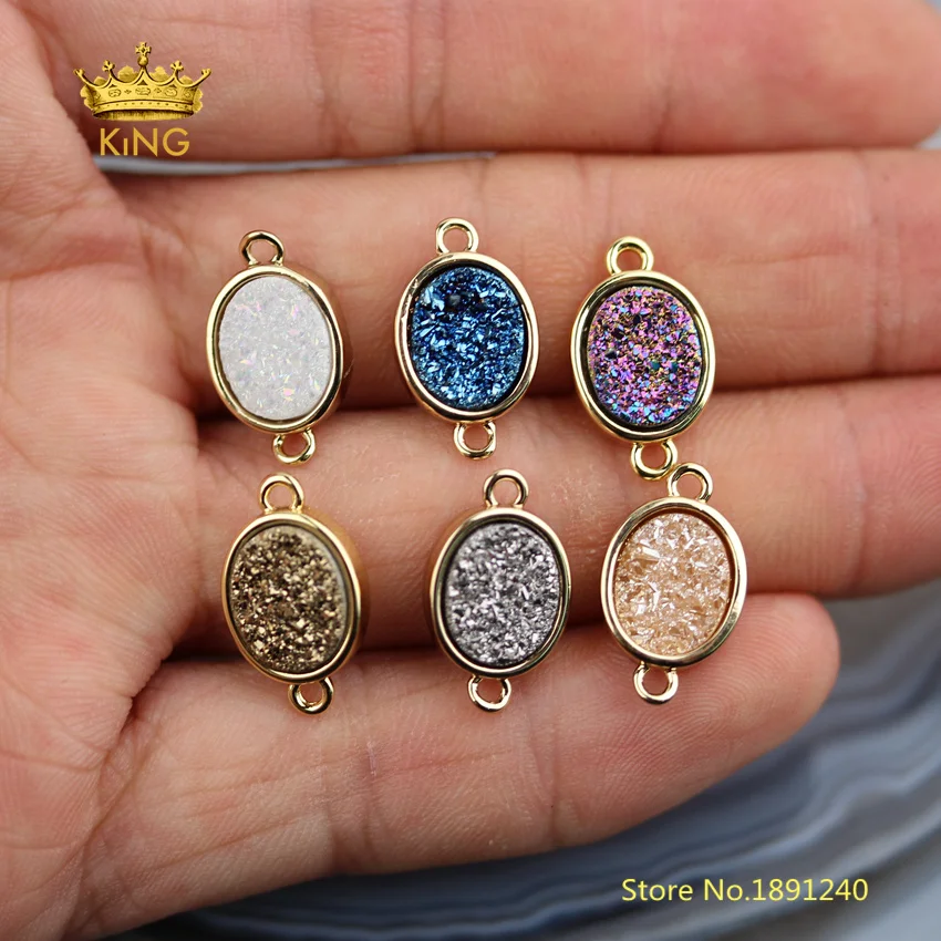Kopen Goedkoop 10 stks Groothandel Oval Titanium Druzy Kralen Connectors Ambachten Armband Sieraden, Natuurlijke Drusy Agaat Stenen Plaat Charms DSS148 Prijs