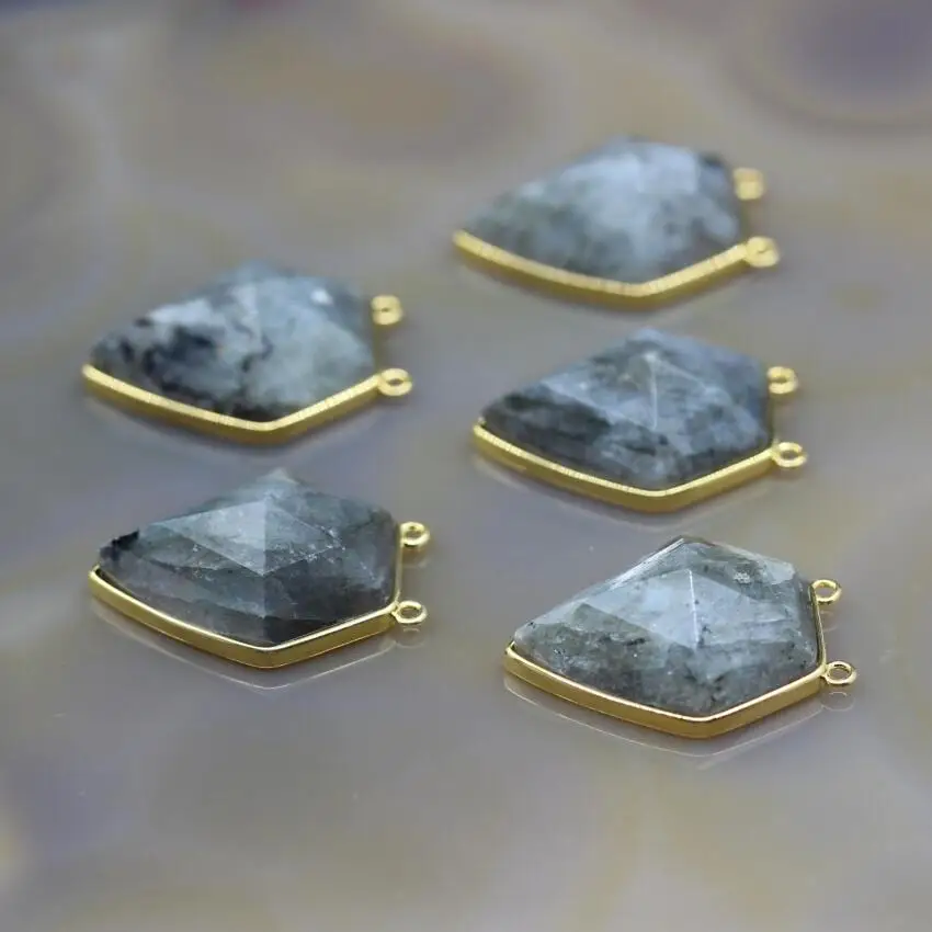 Goede Kopen 5 stks partij, Labradoriet Facet Pentagon Nugget Hanger Connectors, Natuursteen Gems Plaat Dubbele Links Charms, Sieraden Maken Goedkoop