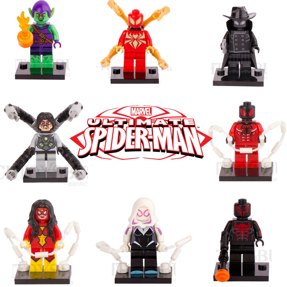 Goede Koop 8 stks Verbazingwekkende Shadow Spider Man Spider Gwen Stacy Green Goblin Doctor Octopus Bouwstenen Bricks minifig Kids speelgoed Geschenken Goedkoop