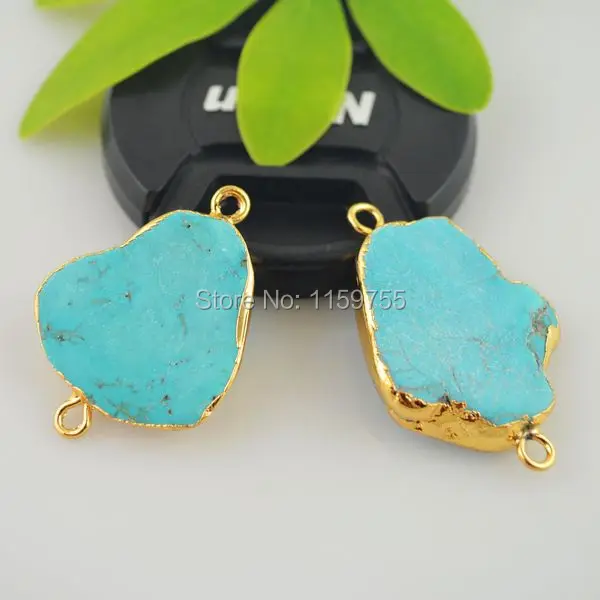 Kopen Goedkoop Goud Kleur Slab Blauwe Stenen Connector Dubbele Bail Goud Gevuld Gem Connector Stenen Sieraden Handgemaakte Stenen Kralen Online