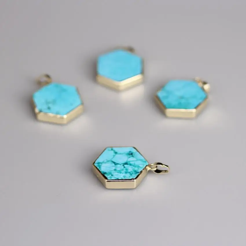 Kopen Goedkoop 5 stks partij Gold Randen Hexagon slab Charms, Ruwe Turkooizen Hangers, Natuurlijke Blauw Howliet Stone Slice Nugget Charmes Sieraden maken Online
