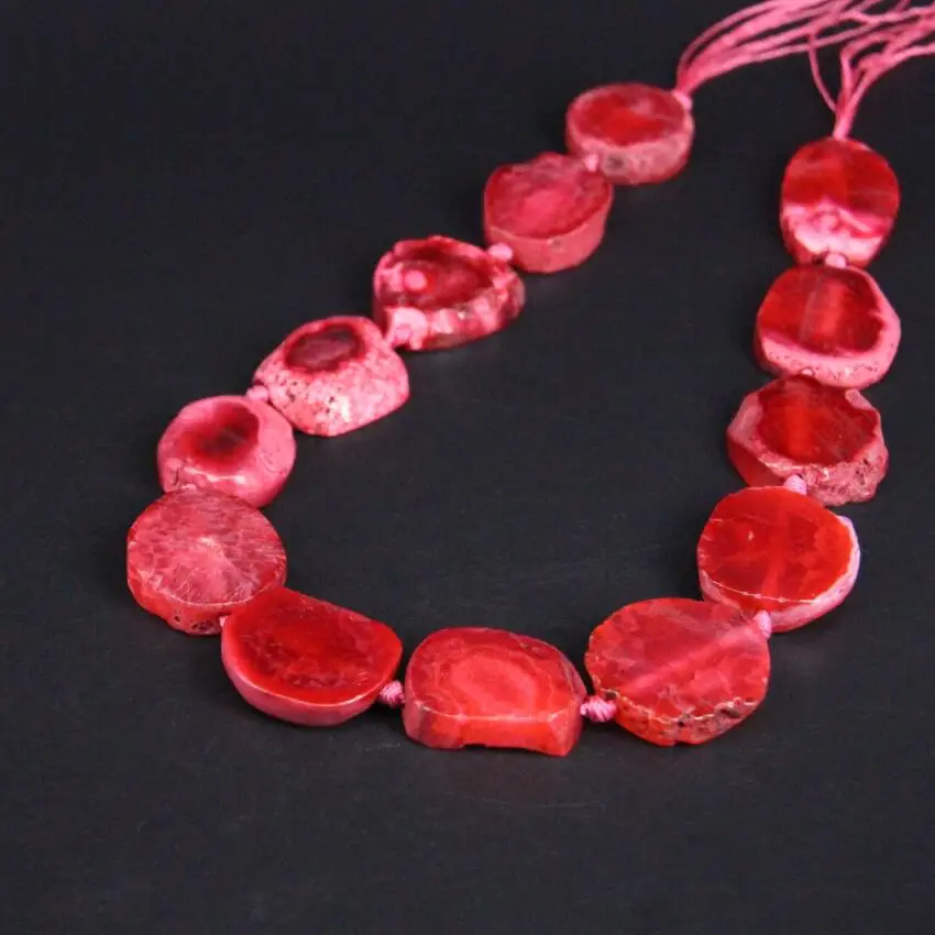 Kopen Goedkoop Approx13PCS strand Roze Rode Crack Agaten Stone Slab Nugget Losse Kralen, Natuurlijke Onxy Gems Stone Slice Hangers Sieraden maken Online