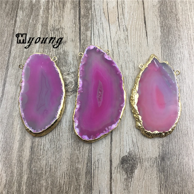 Kopen Goedkoop Grote Roze Banded Agaten Druzy Slice Connector Hanger, Stripped Agaten Slab charm Met Goud Randen en Borgtocht MY1500 Online
