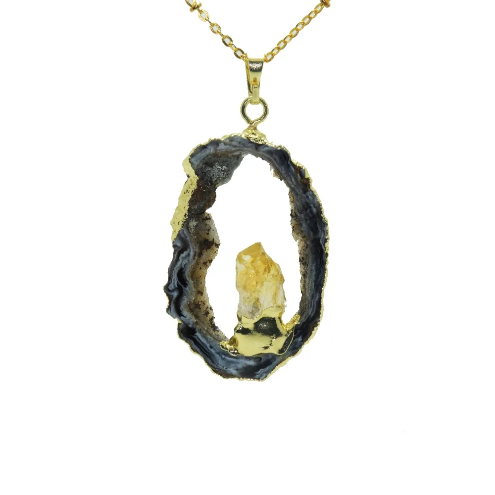 Natuurlijke Geode Druzy Ketting Gold Plating Slab Meisje Steen Gem