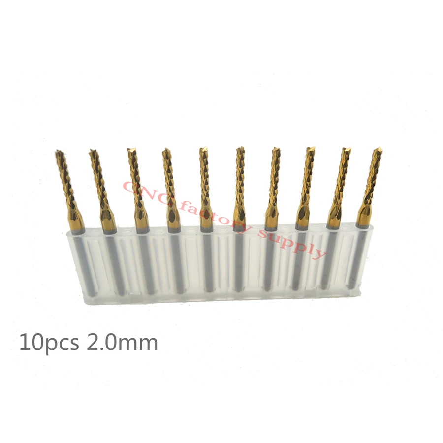 Beste Koop Hoge kwaliteit 10 stks partij Titanium Nitride Carbide PCB CNC Boren Router 2.0mm Goedkoop