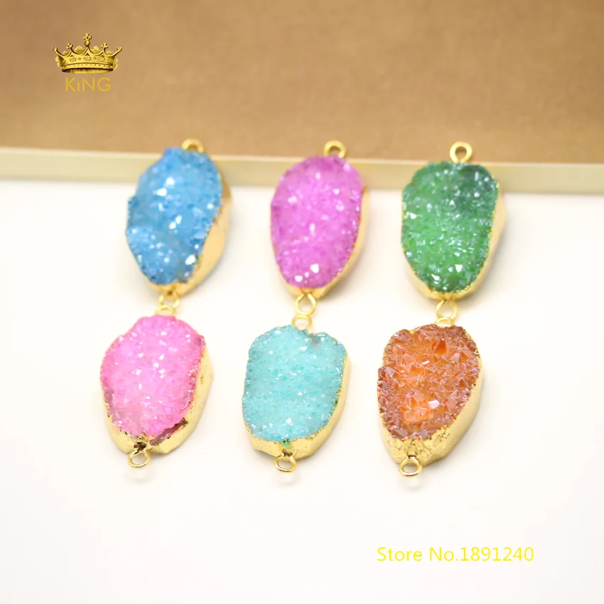 Kopen Goedkoop 6 kleur keuze, 10 stks partij Druzy Quartz Slab Kralen Connectors Ketting, Natuurlijke Drusy Ruwe Kristallen Plated Gold Randen Links Armband Online