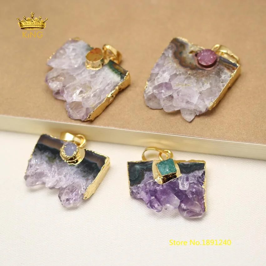 Kopen Goedkoop 5 stks Grote Natuurlijke Paars Kwartsplaatje Slice Kralen Mode Hangers, Ruwe Kristallen Inlay Druzy Drusy Charms Ketting Sieraden GH443 Online