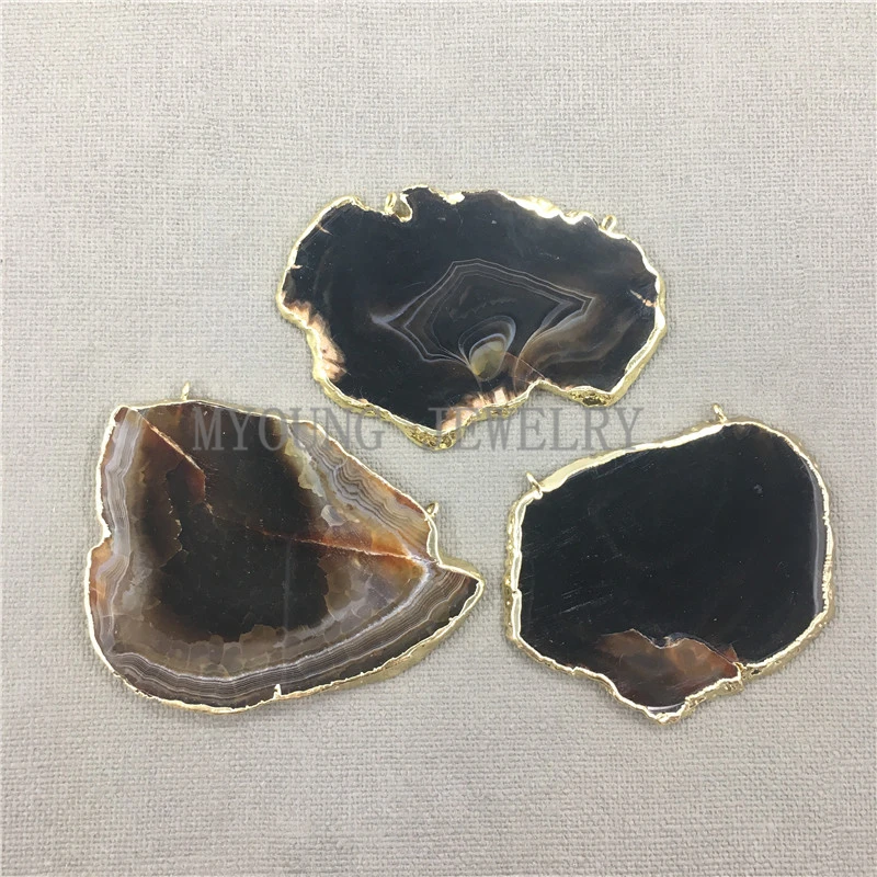 Goede Kopen MY0642 Gratis Vorm Agaten Slab Slice Hanger, Onyx Platte Hanger Met Goud Kleur Rand en Bail Ketting Sieraden Maken bevindingen Goedkoop