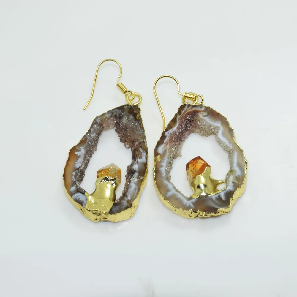 Druzy Steen Oorbellen Voor Meisje Raw Crystal Quartz Geode Vrouwen