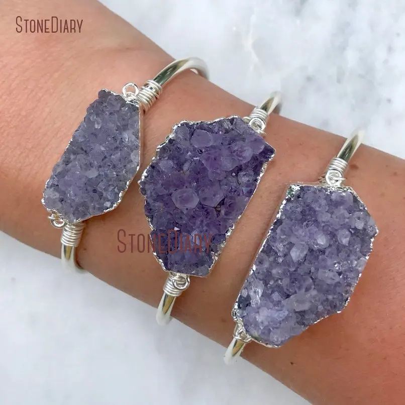 Goede Koop Amethist Druzy Cluster Armband Freeform Paars Druzy Manchet Boho Paars Slab Armband Bruidsmeisje Gift BM20126 Goedkoop