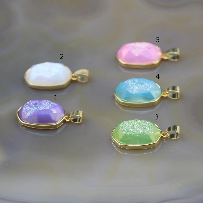 Kopen Goedkoop 5 stks partij, Gold Randen Facet Slab Nugget Charms Mooie Kleur Agaat Druzy Geode, Ruwe Quartz Drusy Ketting Hangers Prijs