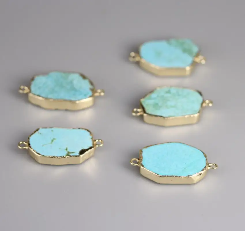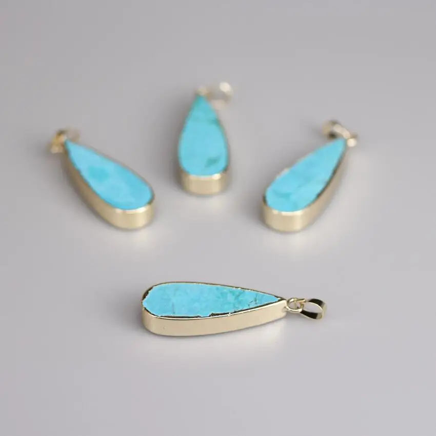 Beste Kopen 5 stks partij Natuurlijke Turkooizen Hangers, Gold Randen Blauw Howliet Steen Gems Droplet Slab Slice Nugget Charms Maken Levert Goedkoop