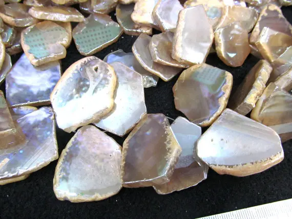 Kopen Goedkoop Rock quartz titanium natuurlijke rock kwartsplaatje freeofrm plated freeform champagne hanger kraal 15 50mm volledige strand Prijs